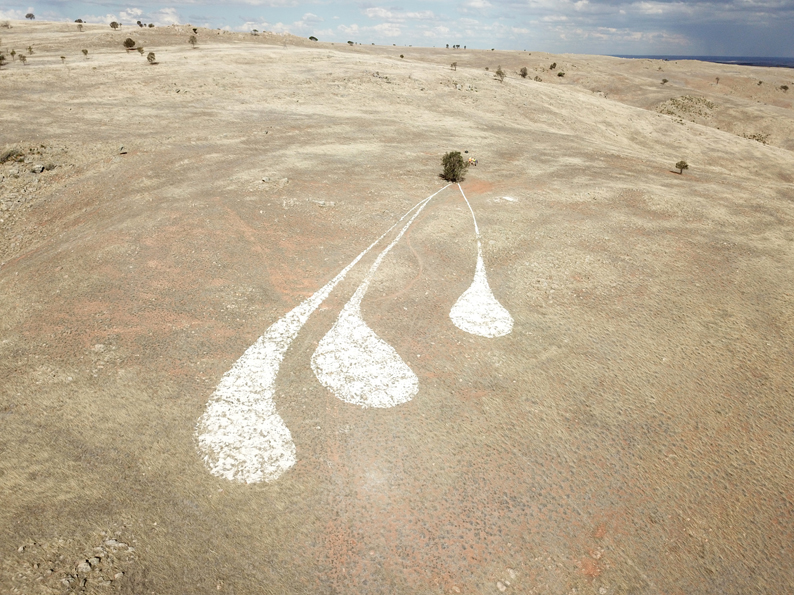 When I select a space to work, whether it be in nature or an urban landscape, I try to find some immediate relation to its next biggest border. For example, this could be a building, a tree, water or something else. Around this border I create my own space. If there is not such a relation point I immediately try to create my own space and create a relationship with the spiritual, historical and/or geological views. My whole interest is to create my own very personal space but this space is always in connection to one of the above conditions.