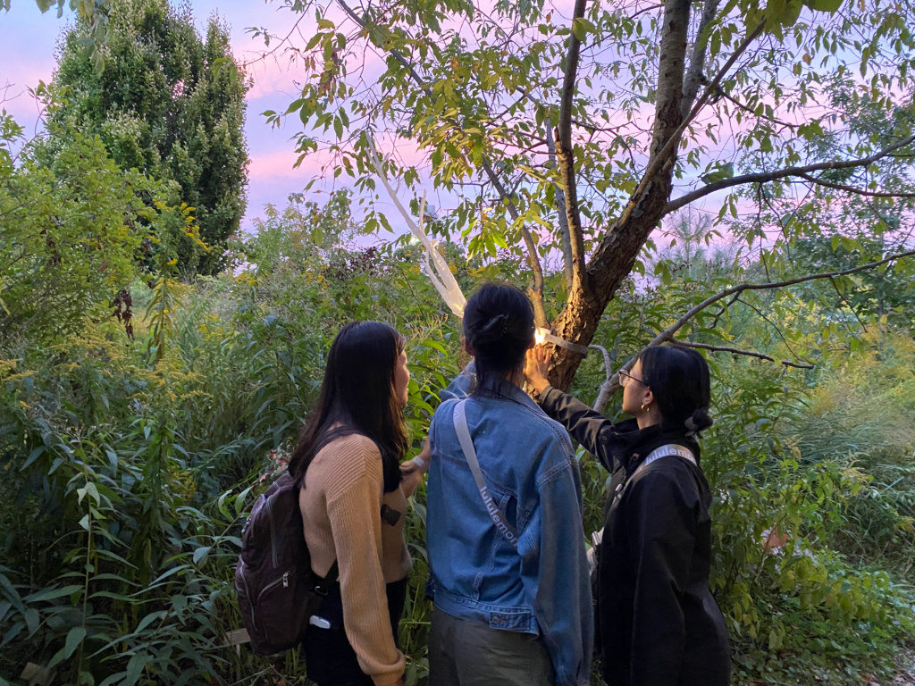 Sun Eaters uses custom electronics to visualize biodata as light. Here a grove of trees at the Toronto Botanical Garden are equipped with branches I created to enable people to both see and feel a tree’s “heartbeat”. The installation shows the electrical patterns unique to each tree, a constantly shifting combination of internal factors including a tree’s overall health, daily metabolic processes, and state of hydration. Their pulsing rhythms are also influenced heavily by external environmental cues such as time of day, season, and the lunar cycle.