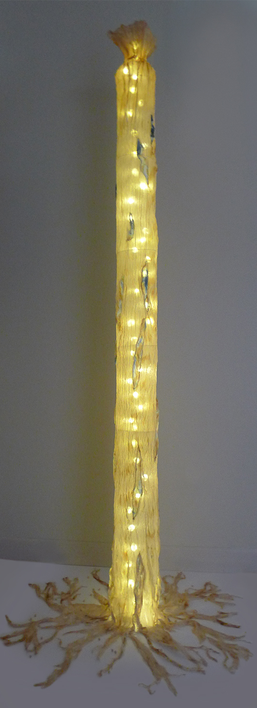Highly skilled in a diverse range of mixed media, Bebe's most recent creations have employed fiber arts. Drawing inspiration from natural elements and various found objects, she often go on walks and finds something new that can incorporate into a piece.