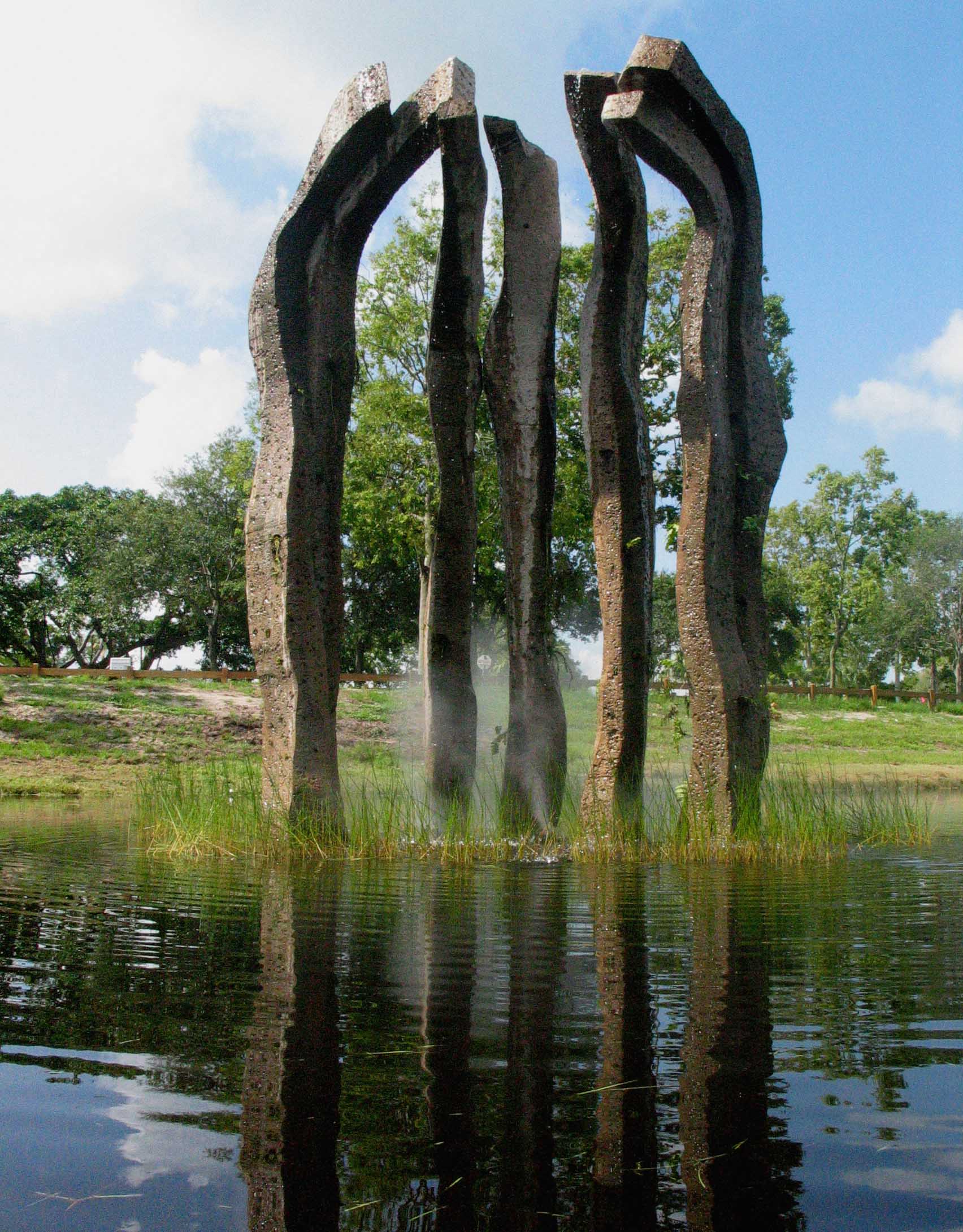 My living sculptures, called Biosculptures, are evocative, plant based systems that clean polluted water, integrating ecological revitalization with the conceptual, metaphoric and aesthetic capacities of sculpture. These projects raise community awareness of the urgency of restoring health to aquatic ecosystems, encourage the necessary imagining of a world where 'culture' and 'nature' are mutually beneficial, and help create the public will to protect and restore these resources.