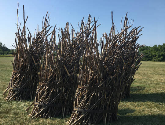 My artwork investigates the vulnerability of nature to humanity. The juxtaposition of natural objects against industrial materials exposes dichotomies of formality/fragility and permanence/impermanence. The natural materials, sourced by hand locally, convey themes of claim, women's labor, and time.