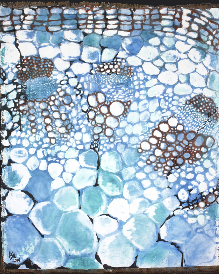 Find me on cliff edges or peering through a microscope, exploring the intersection of ecology and art. Inspiration comes from puddles of ink, cellular structures, sleeping butterflies and the width of a finches' beak. Working in the Asian dry plaster mural method in an experimental way, I make marks with earth pigments, cracking the plaster with intention.