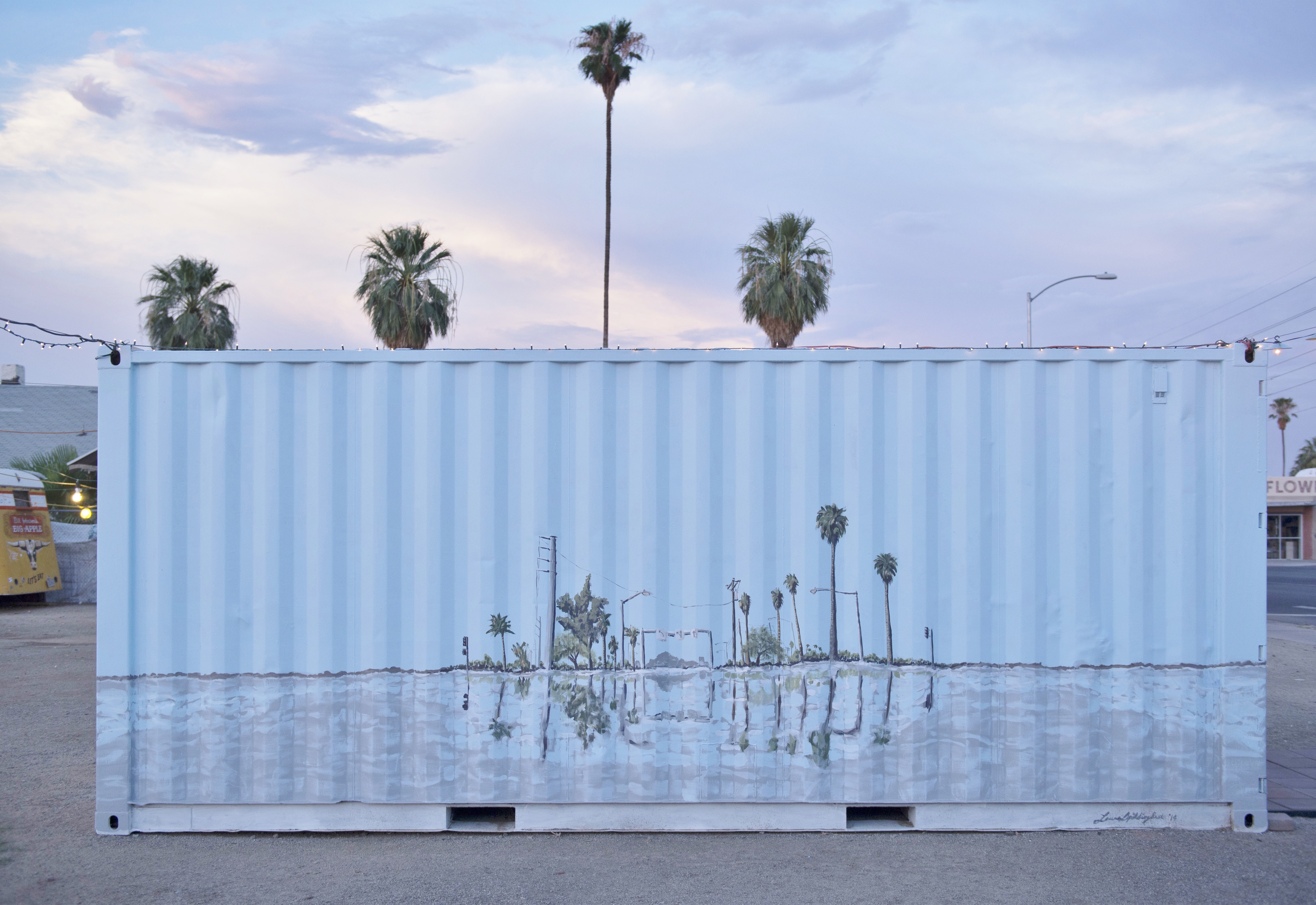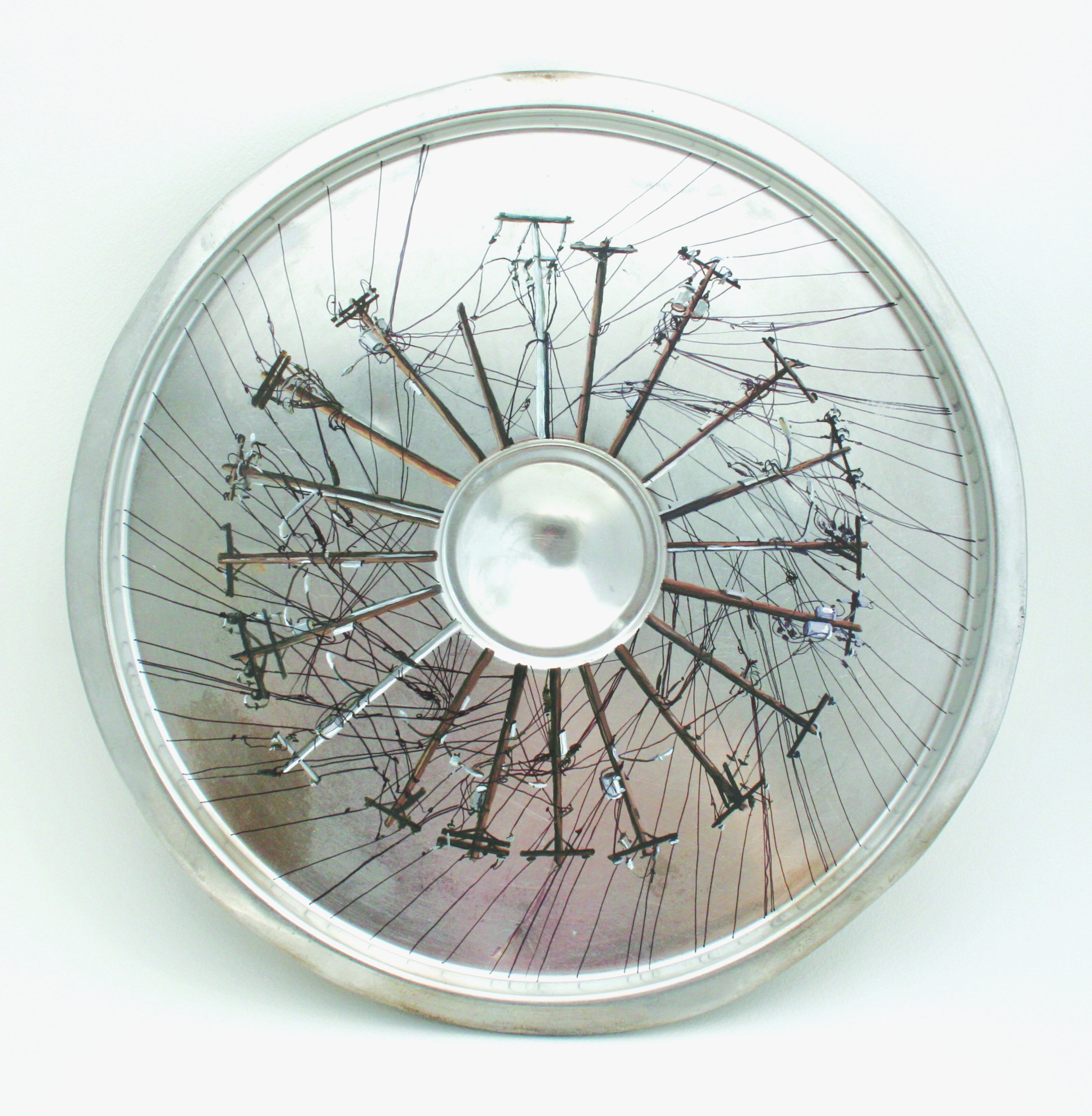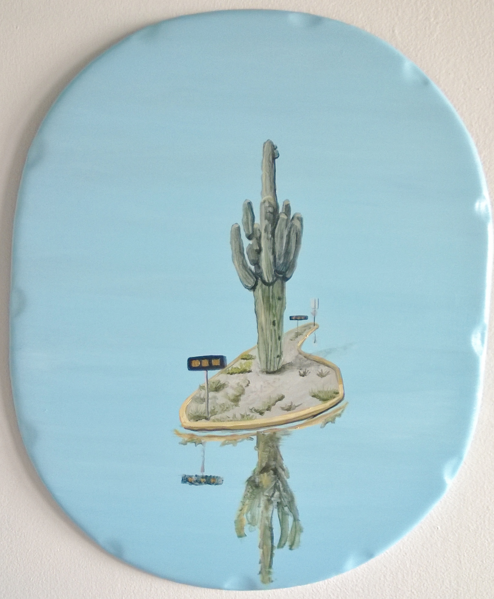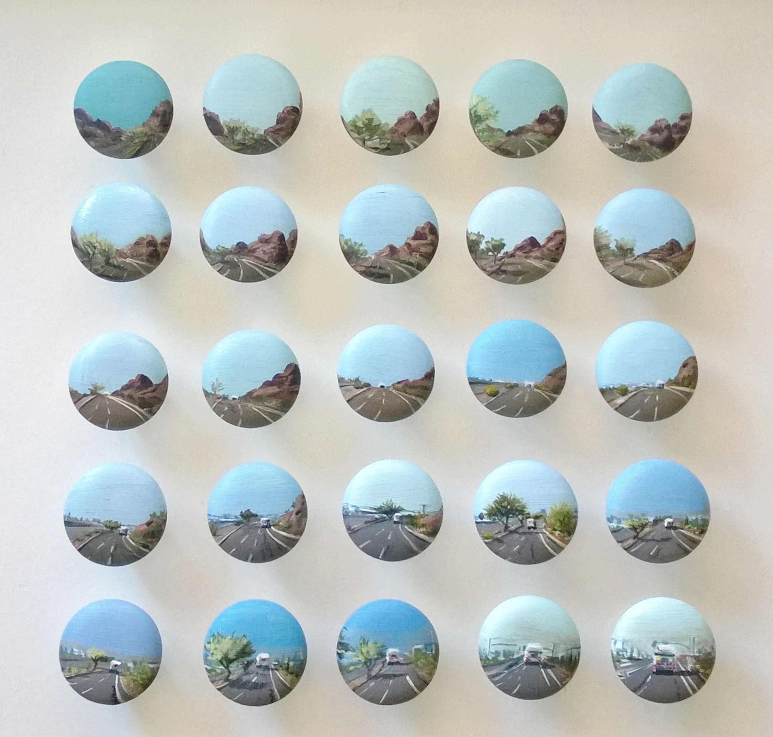 Laura Spalding Best's artwork documents and dissects the urban landscape of the contemporary American West. Exploring mundane iconography and infrastructure, her oil paintings on found objects emphasize and celebrate the strained overlap of the romantic southwestern desert and its modern support system. In this work Best examines