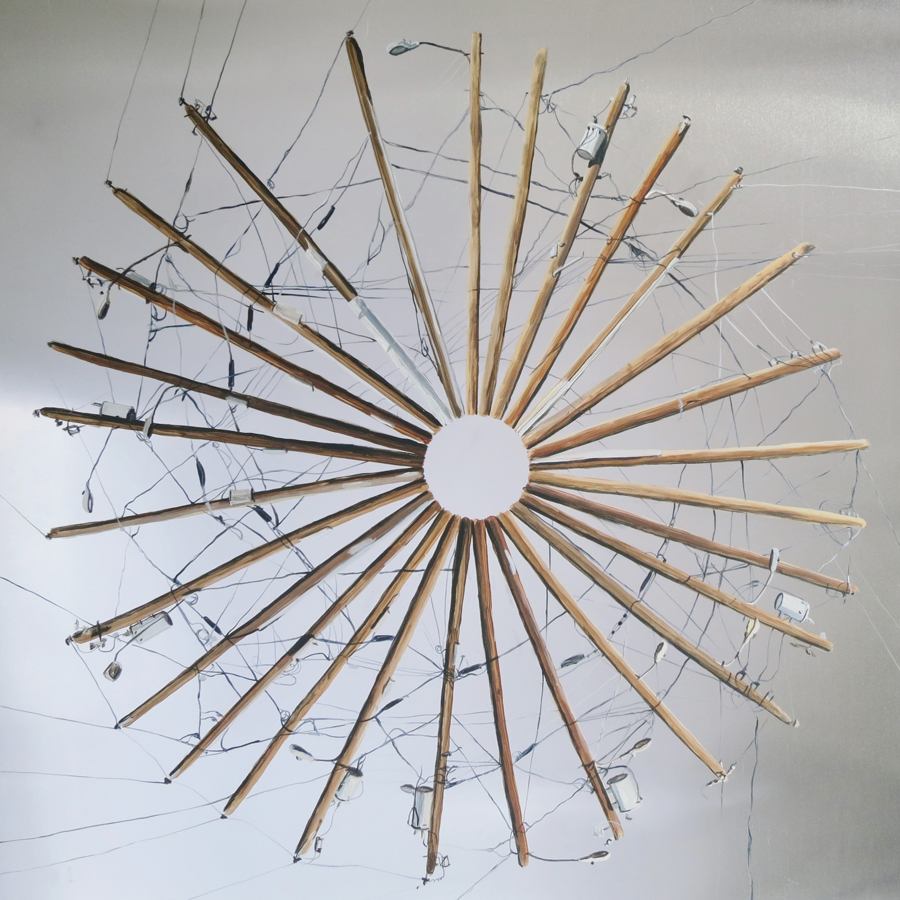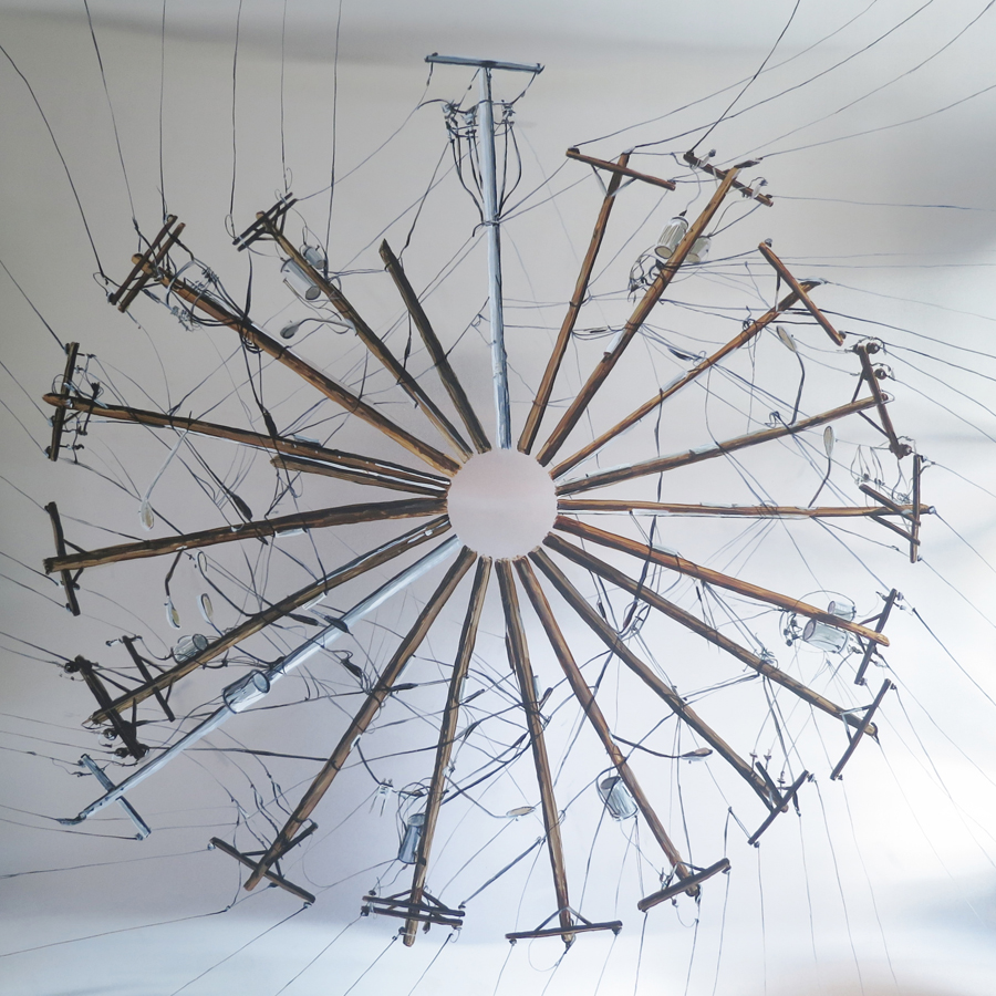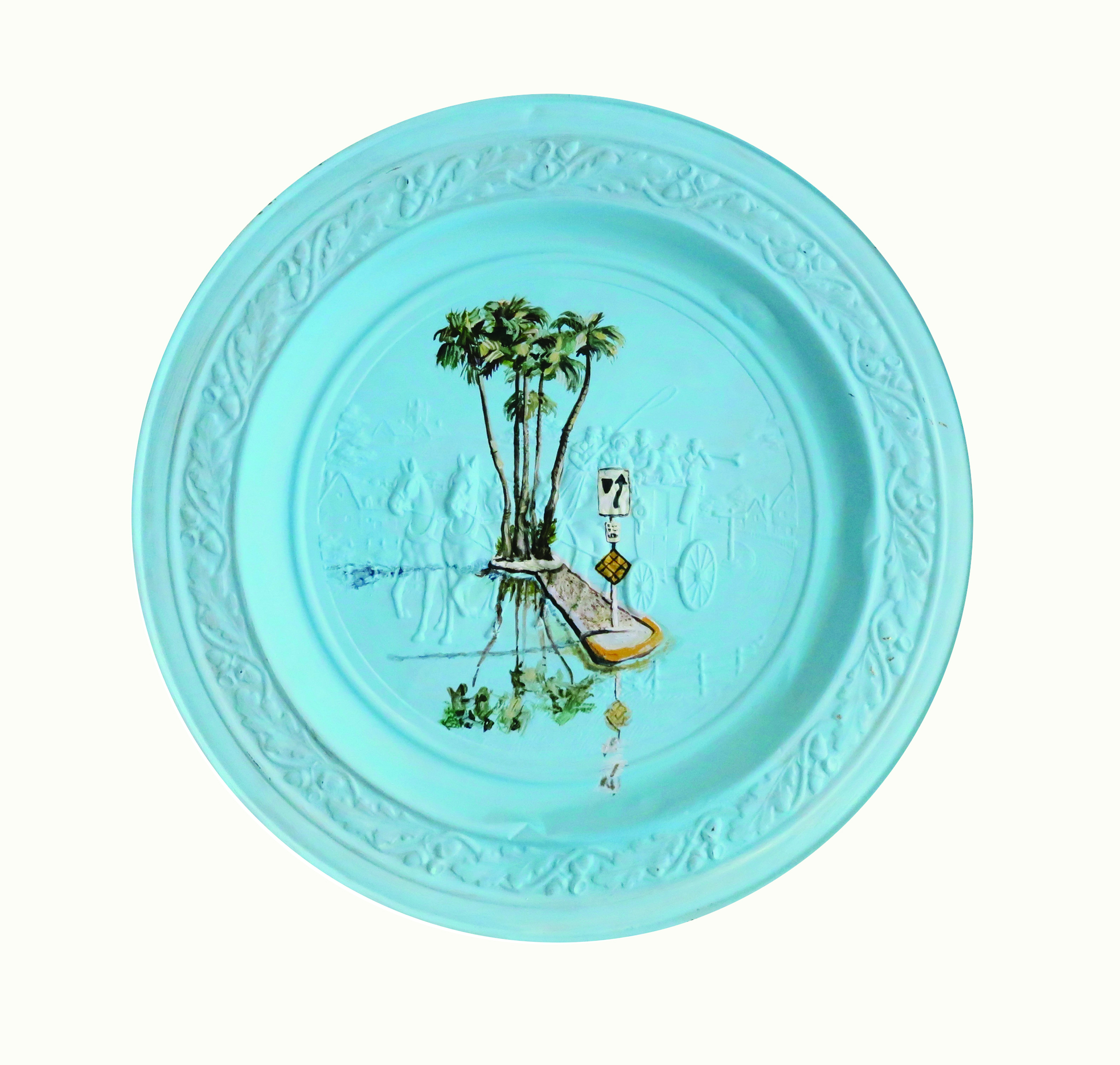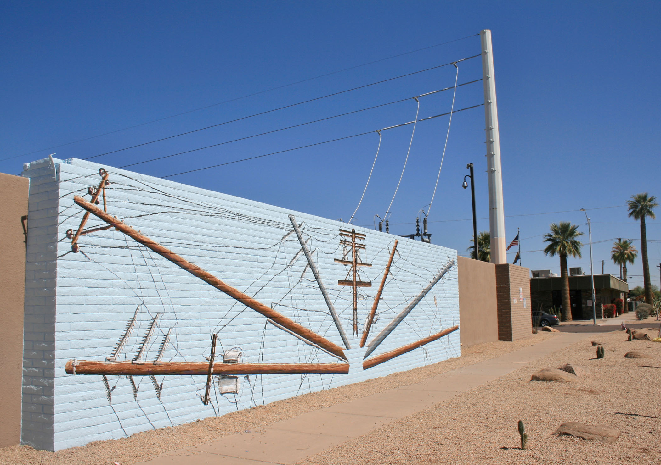 Laura Spalding Best's artwork documents and dissects the urban landscape of the contemporary American West. Exploring mundane iconography and infrastructure, her oil paintings on found objects emphasize and celebrate the strained overlap of the romantic southwestern desert and its modern support system. In this work Best examines