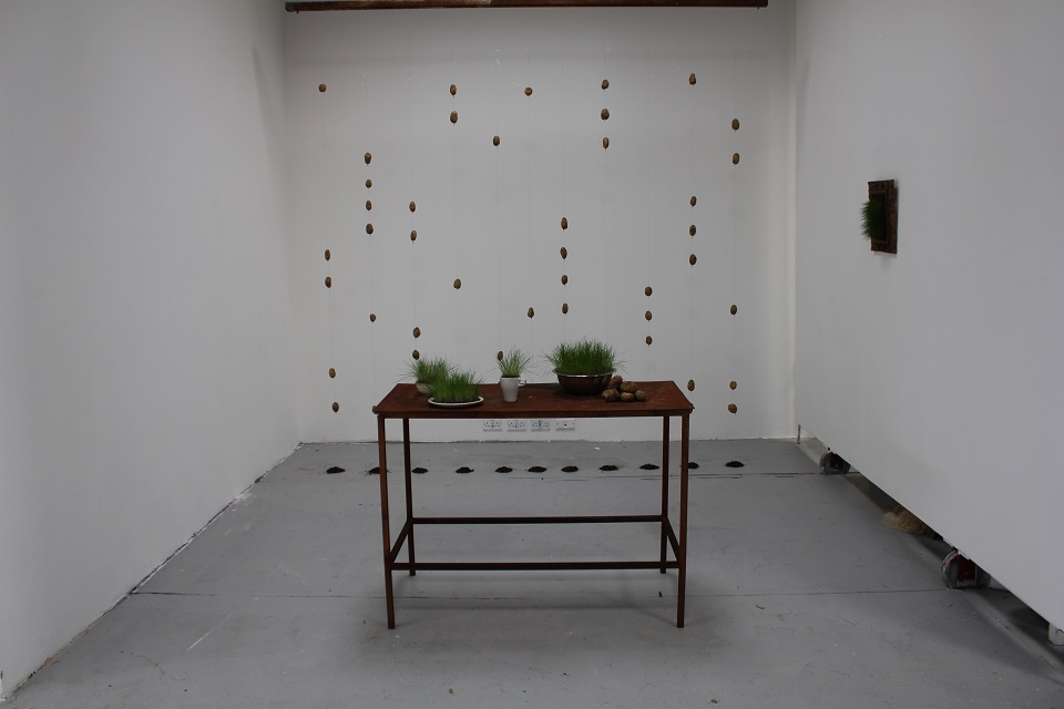 As a contemporary multimedia artist, I explore art making through sculpture, mixed media, large format photography, LED light-based works, installation, ephemeral and performance. Both two and three-dimensional work frequently is relational to historic roles of women and the past, agriculture, nature, environmental topics, disappearing open space and urban conflict. My work has historically been dominated by metal casting. Through this medium I tease out fragility and contrast it with the durability of the metal. Site specificity together with digital photography plays a critical role in my creative process. Metal casting, the technical process of substitution and process-based photography led to cultivating familiarities with a narrative approach. The backbone of my conceptual process developed from that narrative approach into visual dynamics allowing me to layer personal, or somewhat autobiographical memories. Utilizing both a historic and contemporary viewpoint, I developed a contemporary multi-generational interpretative process which incorporates broad cultural memories driven by popular culture, branding and cultural expectations with a critical look at tasks and outcomes. I allow that nostalgia to bloom into familiarities and blend together with humorous and playful aspects of life while addressing some of the more serious outcomes of life. Diversity of topics led me to integrate social and cultural constructs to build and reveal connections and layers to develop those narratives and familiarities. I frequently incorporate social memory and documentation of disappearing aspects of life while expanding ideas and concepts to include larger topics relating to changing cultural and physical landscapes as well as gender shifts. Utilizing natural materials to highlight and express shifts is an important part of my multidisciplinary practice. Growing and utilizing regional foodstuffs, to grass sculptures and crop art are all means of expression that led to a significant portion of my work focusing on ephemeral materials. Investigating where women started and where they are now as part of western civilization and documenting those changes, within a 200-year window, has been a primary focus. Continually experimenting and researching memory-based approaches thru a contemporary visual dialogue, my practice addresses and references expectations pertaining to historic interpretations of women's work into visual dialogues. Pursuing investigations documenting time, place, emotion, reaction, roles, expectations, modernization, labor and change, I find myself continually deciphering my work and practice through self-identification frequently finding connections to the west and womanhood within that context. Conceptual notions of the current feminist era paralleling needs of underrepresented marginalized social sectors has become an element of my comparative process to develop new work, social engagement projects and the critical examinations required to perpetuate the driving forces within my work.
