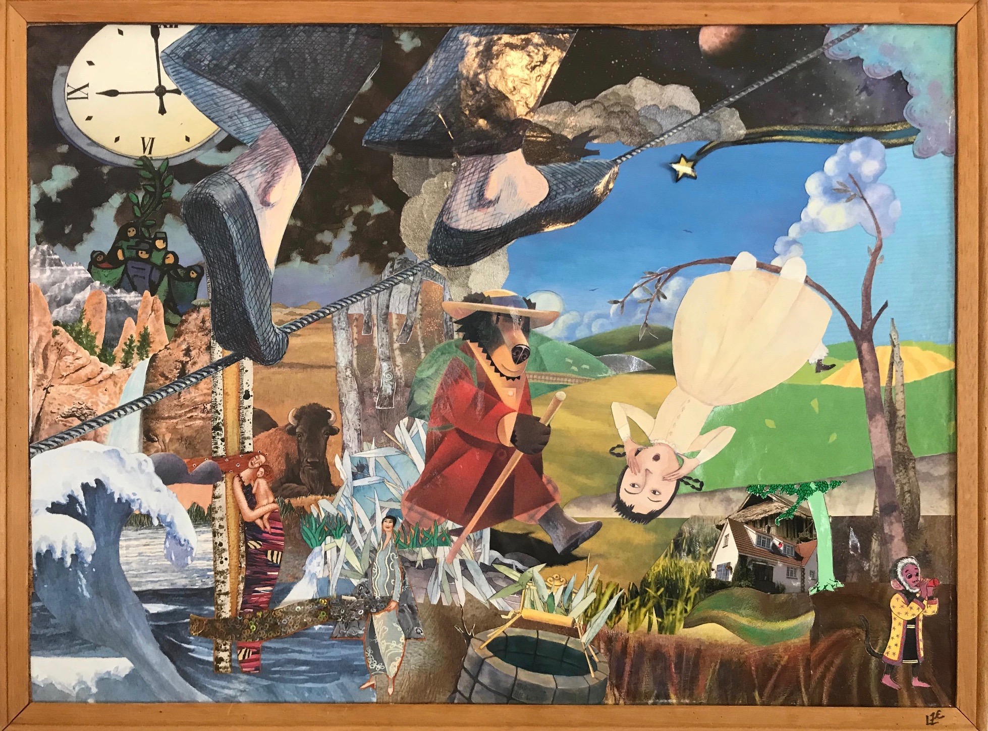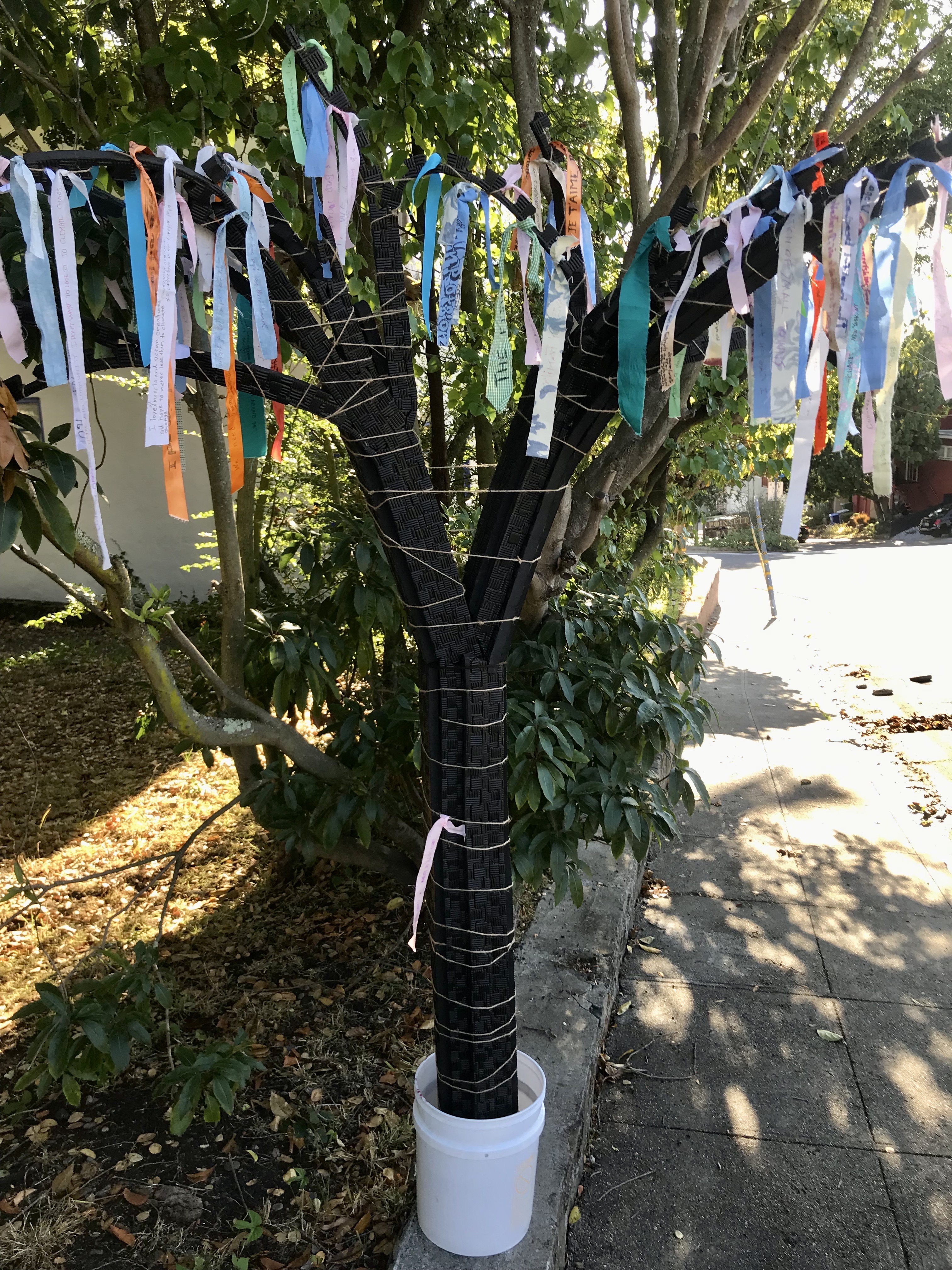Moving to the SF Bay Area in 2017 landed me in a very different place at a very different time. I connected with other artist activists and created the "Climate Ribbon Tree", collecting ribbons with declarations of "what I love and hope never to lose to climate chaos" from climate strikers, school children and their families, art show visitors, and futurists. I joined a team of artists to paint "The World Is On Fire" with the Clarion Alley Mural Project (https://www.youtube.com/embed/pfQHW5YQeIk?autoplay=1&feature=oembed&wmode=opaque - Video by Maya Curry maya@virtualground.org). "LIFE ReImagined: A Quest" is my pandemic piece, leading to a collaboration (The Art of the Green New Deal, Be The Green, EarthGames and the students of University of Washington) to create a playable game based on my piece as a prototype, by the same name. (https://bethegreen.win/lifereimaginedgame)