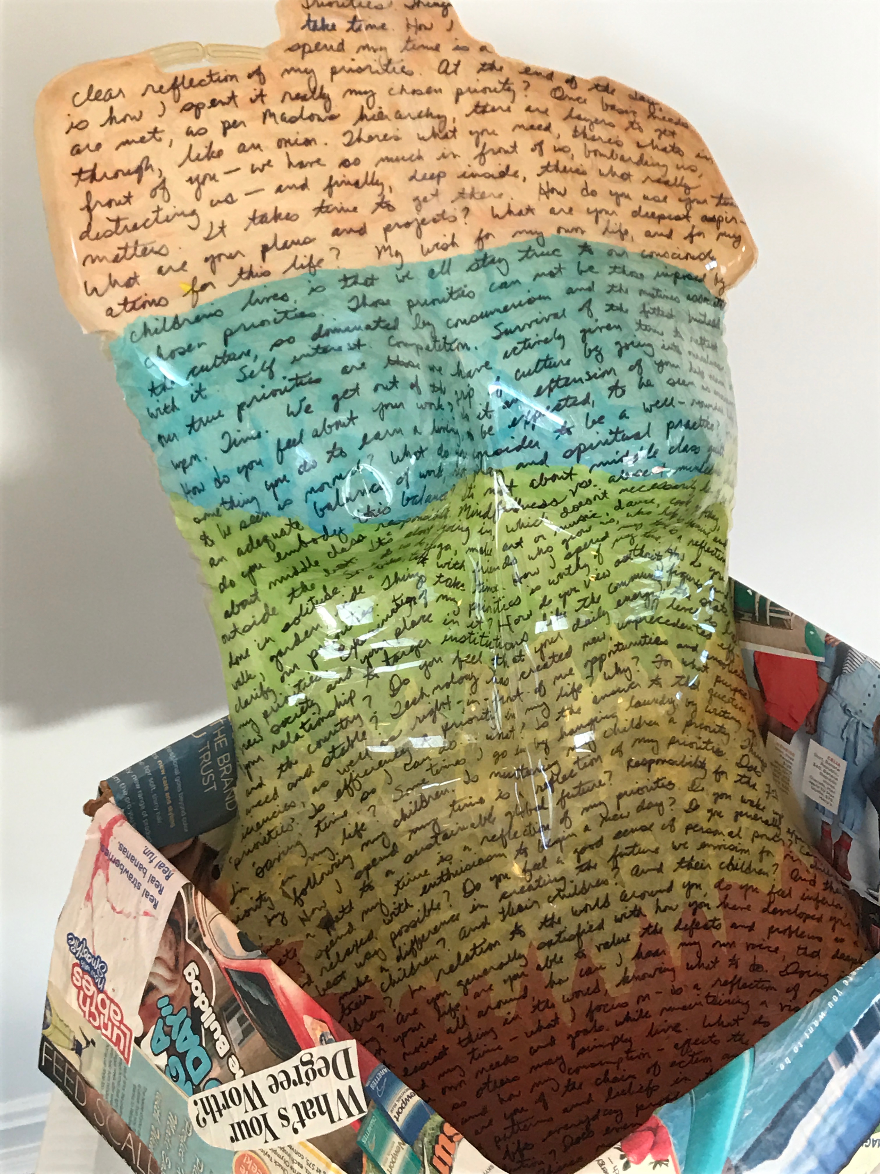 As a painter (BFA, MSU), I'm inspired by my relationship to the materials I work with. Considering resource use and the effects of consumption, I am committed to working with repurposed and found objects. Using objects in unintended ways creates a juxtaposition, inviting others to consider materiality and its' source (including labor, extraction, production, transportation, and disposal). While many materials I use are manufactured, my assembly of them is clearly handmade.