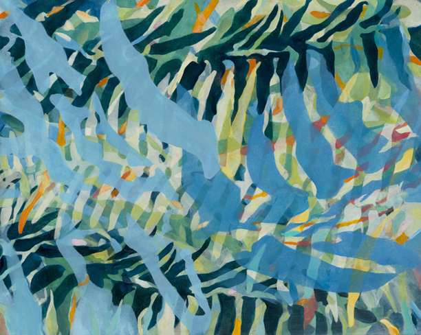 I paint silhouetted shapes inspired by ferns that flourish in old growth forests and the edges of my own backyard. Ferns are among the most primitive botanical life forms, having thrived for millions of years by adapting to an ever-changing environment. Old growth forests are unique markers of Earth's timeline.