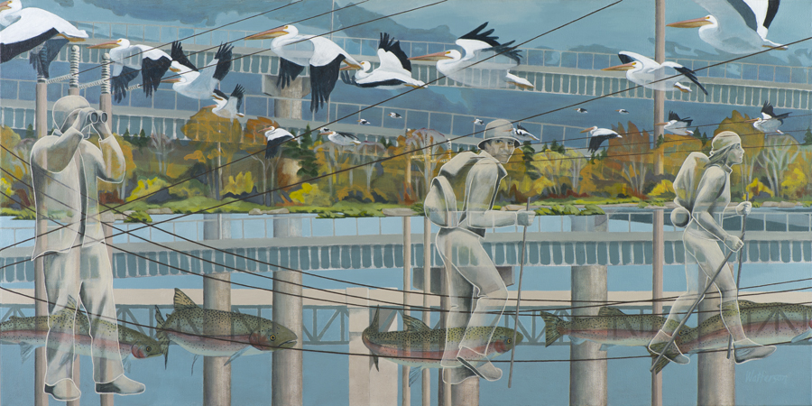 I am interested in how humans are an integral part of nature even though we are largely unaware. That human sense of otherness or separateness concerns me. It has a profound impact on personal and policy decisions in regards to global resources and human stewardship of the planet. As a result, my paintings are visual investigations of the connection between humans and nature.