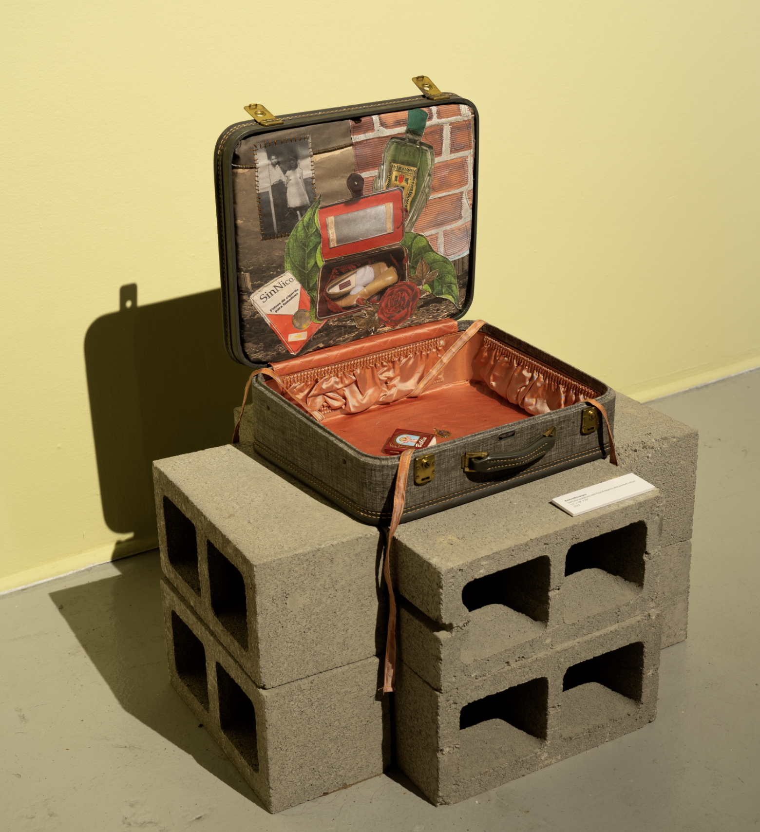Paola de la Calle is a Colombian-American multidisciplinary artist whose work examines home, identity, borders, and nostalgia through the use of textiles, printmaking, and sculpture. In her practice, De la Calle combines photographs sourced from family albums and found images which she prints on textiles, as well as poetic texts, paintings made with coffee instead of paint, and found objects, to mine the aesthetics of nostalgia and examine the socio-political relationship between the United States and Colombia.