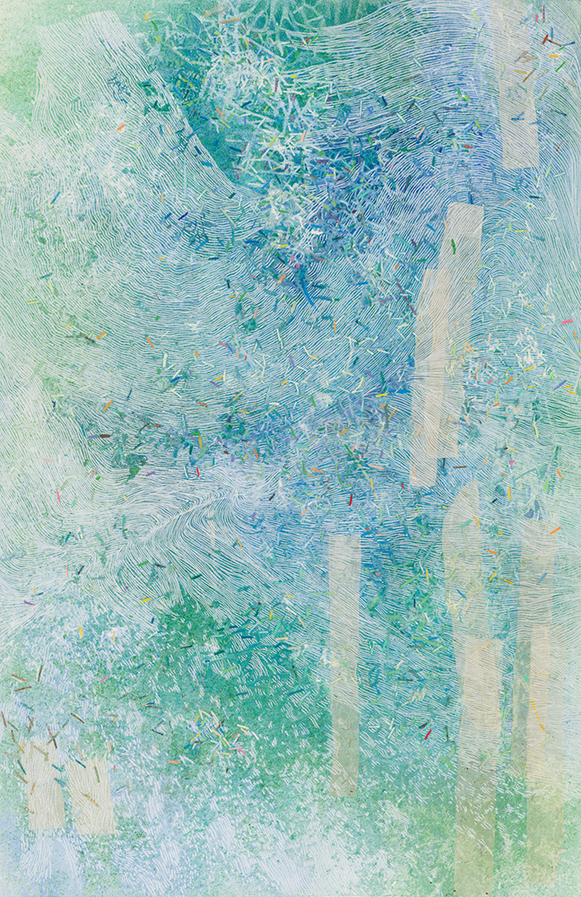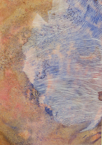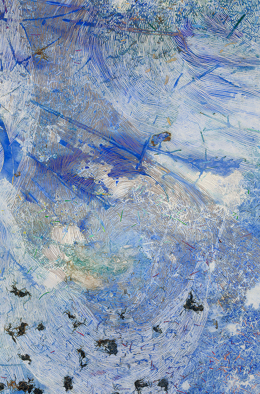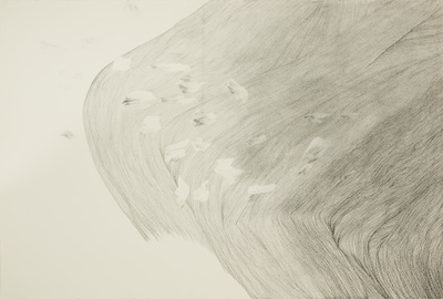 My work considers the influence of solastalgia to our perceptions of the natural environment. Our eco-biographies are changing at a pace that is difficult to navigate due to climate change. These large scale drawings encourage the viewer to an experience of immersion. The white lines represent ideas about interconnectivity infused with a deep concern for the earth's fragile ecological systems. Encapsulations of images furrow the surface of the paper. A fingerprint, a whale's underbelly, or rising waters are suggested as the viewer oscillates with macro and micro visions of the earth.