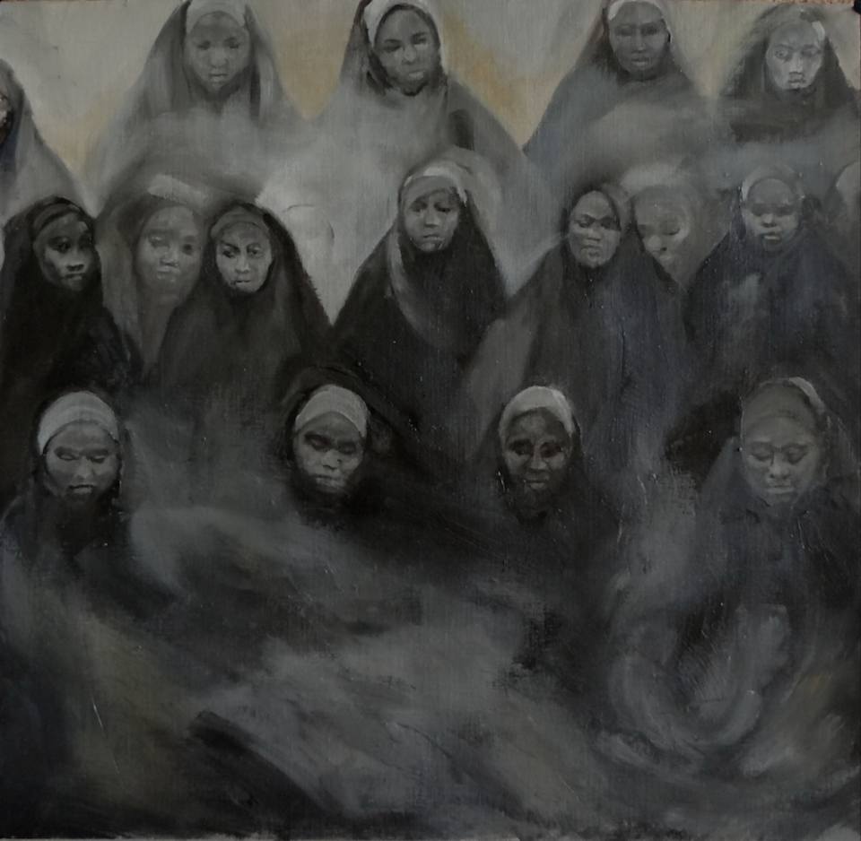 Belgian artist Ria Vanden Eynde had a career in mathematics before turning her focus on social studies and feminism. Her primary medium is oil painting. Her works have been exhibited with Transcultural Exchange, in the Cluster Gallery in Brooklyn, The Emily Harvey Gallery in NY and locally in galleries in Brussels and Leuven. She took art classes at the municipal art school SLAC in Leuven and completed residencies and workshops at the School of Visual Arts in New York, the Brooklyn Art Cluster in Brooklyn and the Center for Contemporary Printmaking in Norwalk, Connecticut.