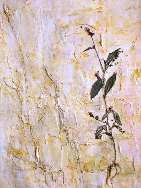 I think I may be trying to challenge my need for systems, traditions, orders, and beliefs that categorize. To help me understand the organic whole and defy the predictable, I try to keep in mind, when writing and when painting, the six intrinsic shapes of nature: the oval, the wave, the meander, the honeycomb, the branch, and the spiral (yes, I know, yet another set of controls . . . but perhaps, if I have these forms in mind when approaching my paper or canvas, I might note and save a complex moment in shadow, passing, or even clarity).