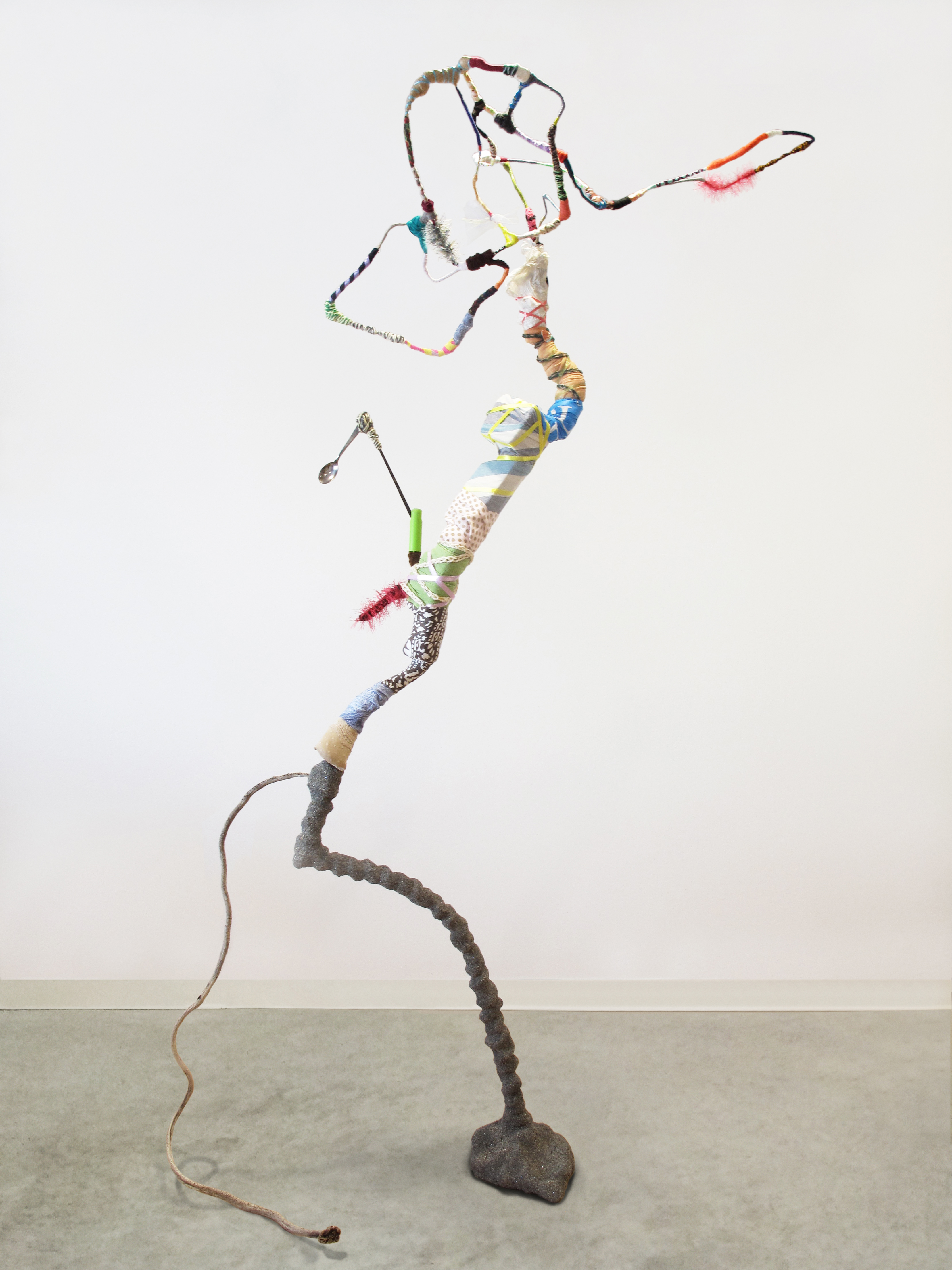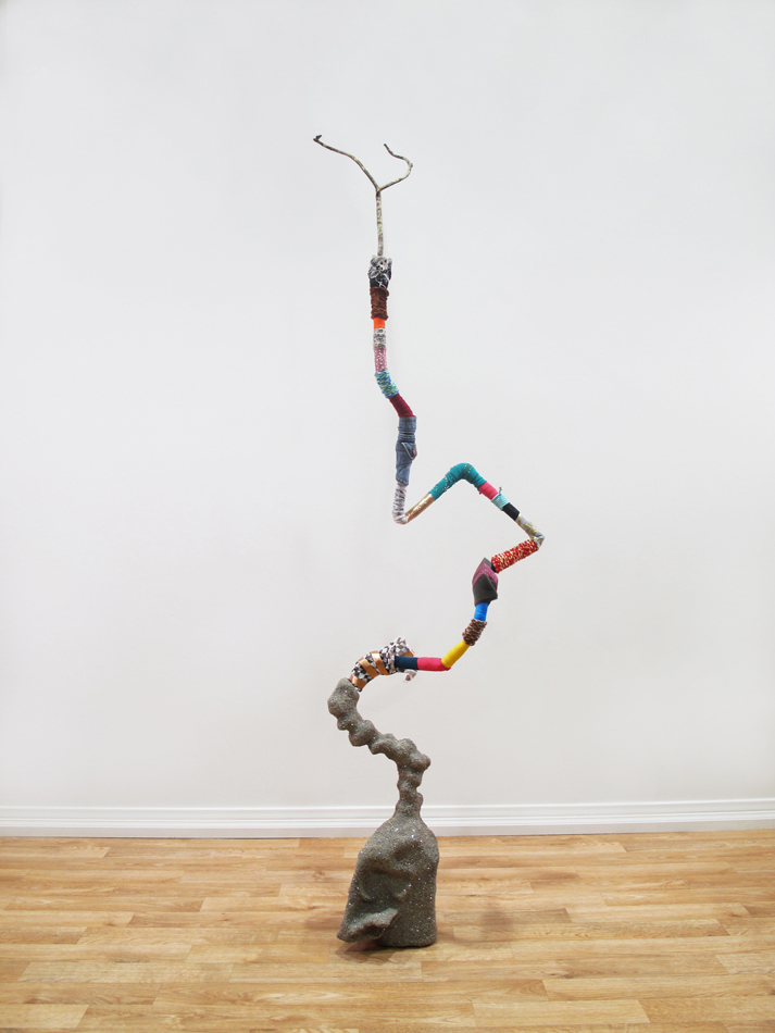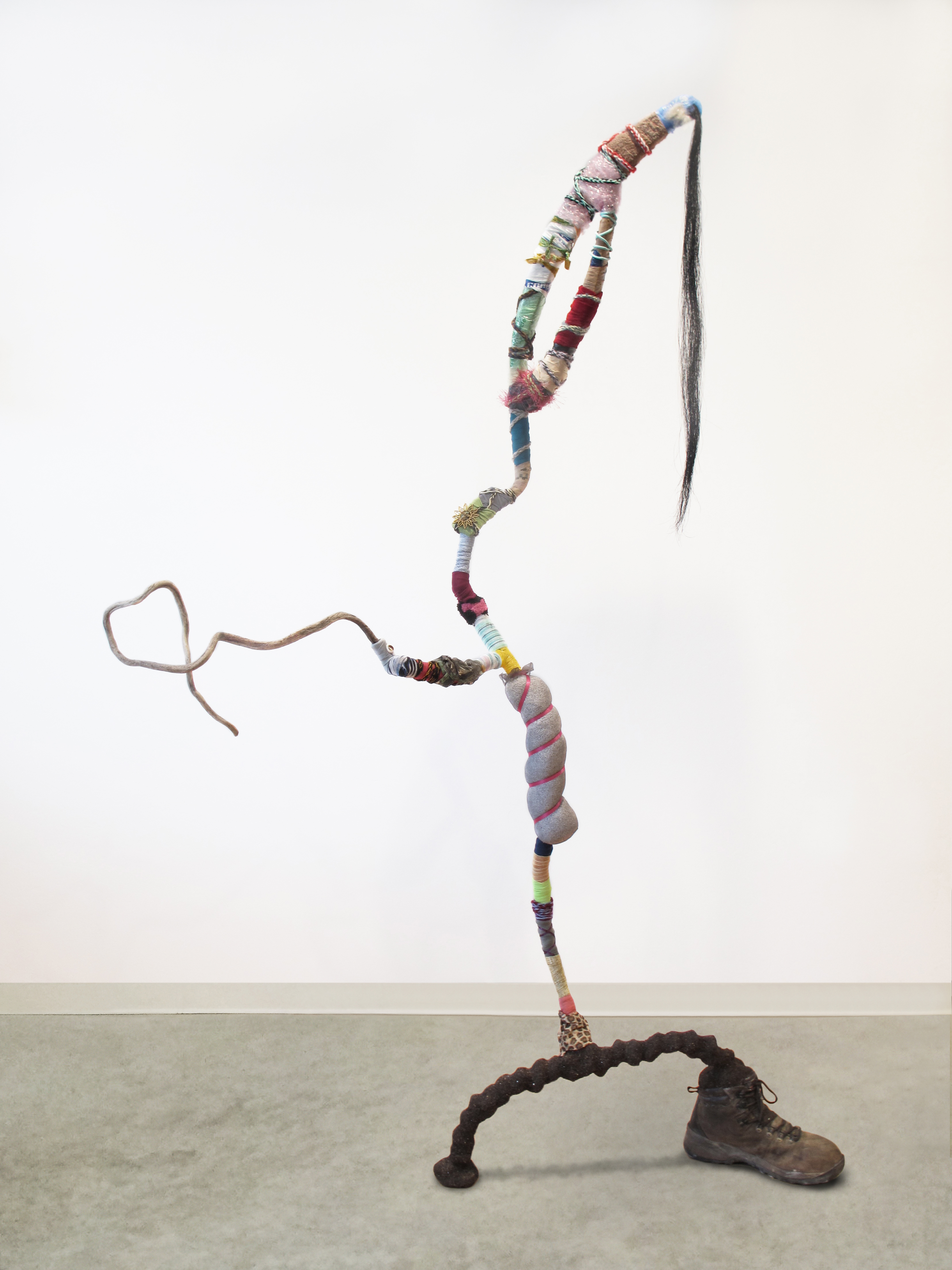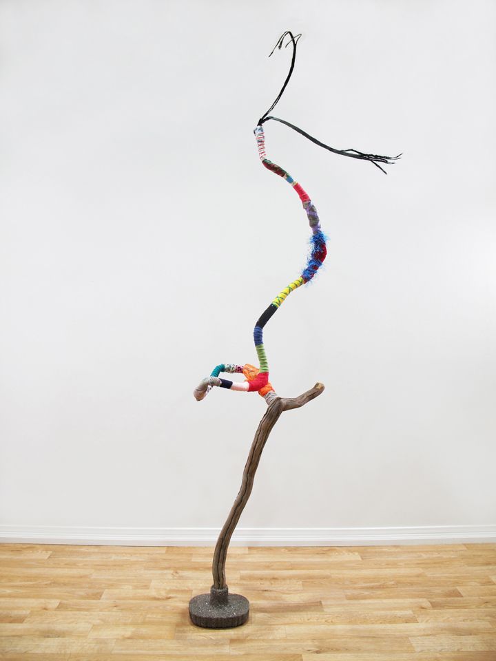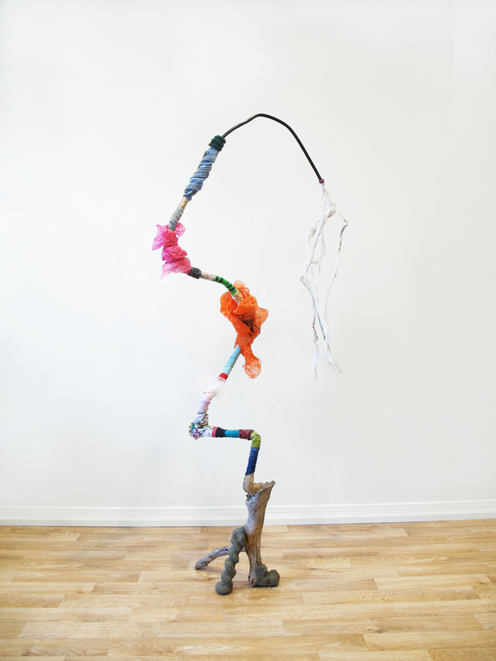 I constantly gather materials, finding inspiration in my surroundings. Like a scavenger, I play an interventional role in removing garbage from the landscape, preventing further damage. I am also drawn to natural materials and organic forms. My process is meditative and intuitive. Figures emerge, in gravity defying poses on the brink of movement, alive with possibility. Their haunting spiritual presence reminds us they have not gone back to the earth, but asks us to question the choices we make in our daily existence.