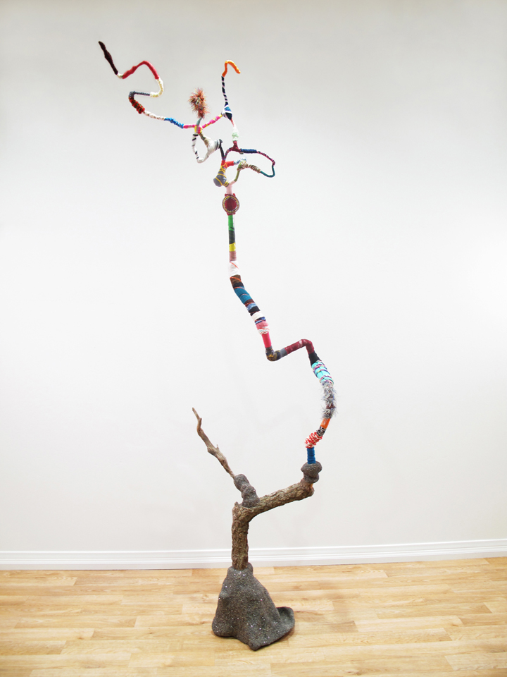 While my heritage incorporates the Tesuque Pueblo and Costa Rica, my strongest affinity is to nature. While serving in Iraq, amid the devastation of combat, my visceral reaction to miles of mountainous trash heaps, the evidence of systematic yet unconscious destruction of our planet led me to question my own practices. I began to build assemblages out of discarded and natural objects. I am engaged in an aesthetic and spiritual ritual to channel and honor Mother Earth.
