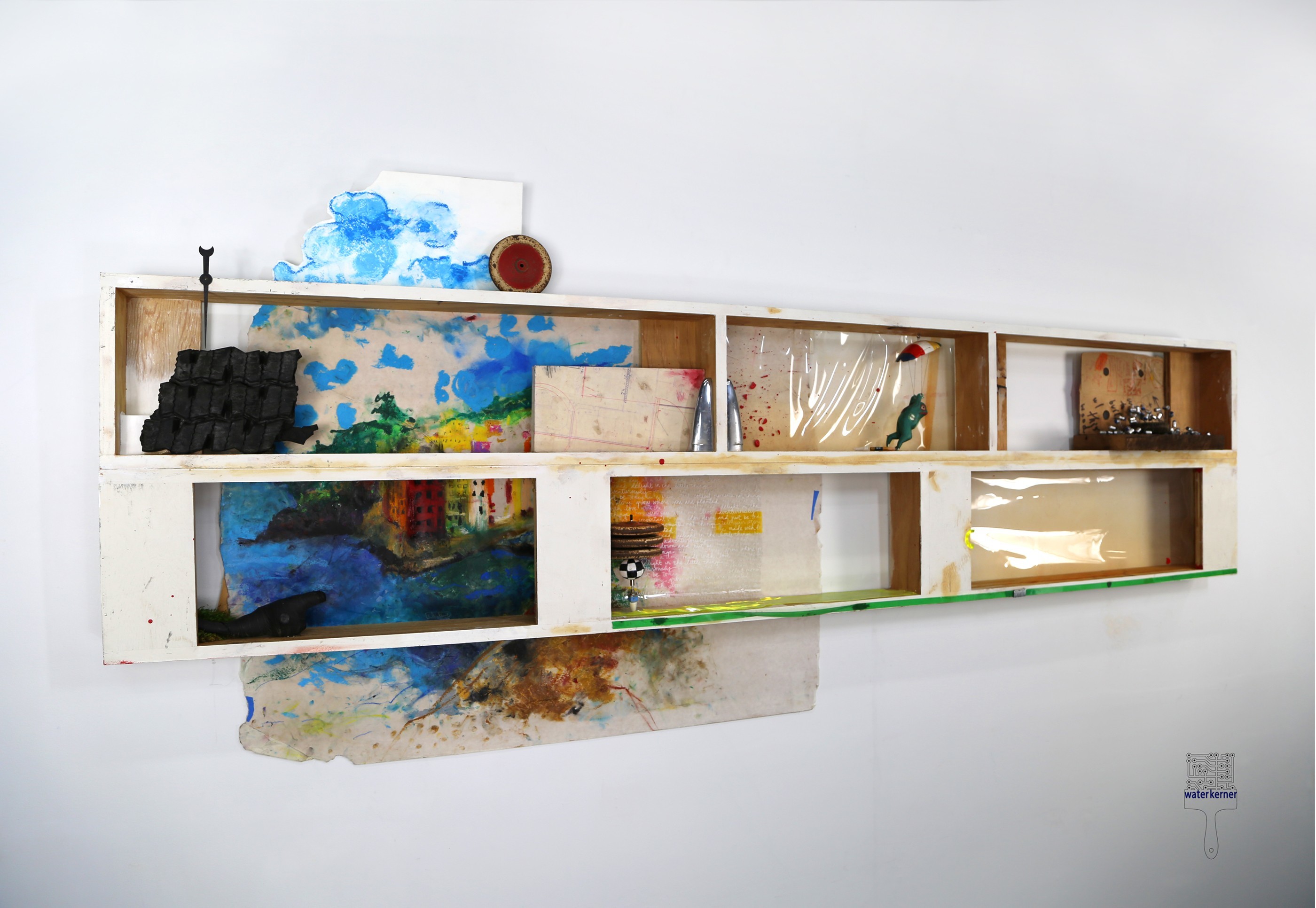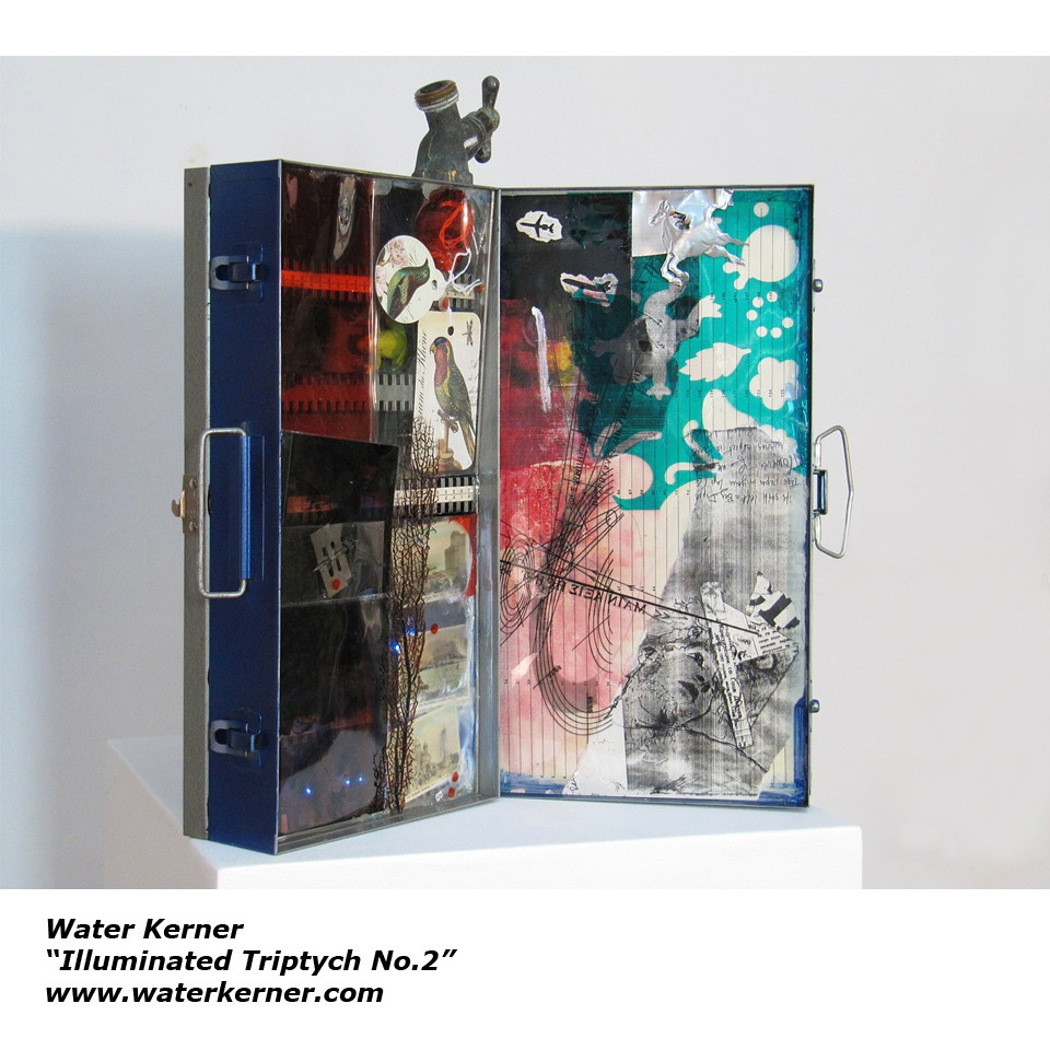 WATER KERNER began creating art at the age of 5 in New York. She received her BFA from MICA (one of the oldest & most prestigious art schools in America), and was awarded the highly-coveted Skowhegan School of Painting & Sculpture Scholarship. At Skowhegan, Water's talents were again nurtured by a faculty of distinguished & luminary Contemporary Artists including: Francesco Clemente, Judy Pfaff, Mark di Suvero, Ed Moses, and William Wegman. Upon completion of the scholarship, Water was honored with the distinction of the Skowhegan Sculptor Merit Award. In 1992 Water moved to Los Angeles to open the pioneering studio L@it2d ("Latitude"), known as the first Hollywood animation boutique to create digital art for TV & Film studios utilizing cutting edge hardware and software on Apple computers. Lati2d garnered a myriad of creative awards and recognition over the 17 years Water acted as President, Director & Chief Artist/Designer for the company. Prestigious clients included: Warner Brothers, Sony Pictures, DreamWorks, Walt Disney Studios, Paramount Pictures, Columbia Pictures, 20th Century Fox, David Fincher, Janet Jackson, Spike Jones, Jim Henson Company, Microsoft, Virgin Records, Propaganda Films, NBC, ABC, CBS, HBO, and Walt Disney Imagineering. Lati2d was also selected for inclusion in the Walter Annenberg USC Incubator program and 25 creative industry trophies grace Water's mantle at home, including two prestigious CINE Golden Eagles and the NAFDMA (National Association of Film and Digital Media Artists) Insight Award. Recognized and rewarded for her original and unshakable visual talent, Ms. Kerner decided in 2009 to focus solely on her fine art inspired by the magic of light, motion and/or sound in her studio in Lake Arrowhead. Her installations, sculptures and paintings have been shown in cities across the United States and abroad. For a complete list of Art Exhibitions, awards, reviews or information about upcoming Exhibits, Gallery and Museum shows, please visit: www.waterkerner.com