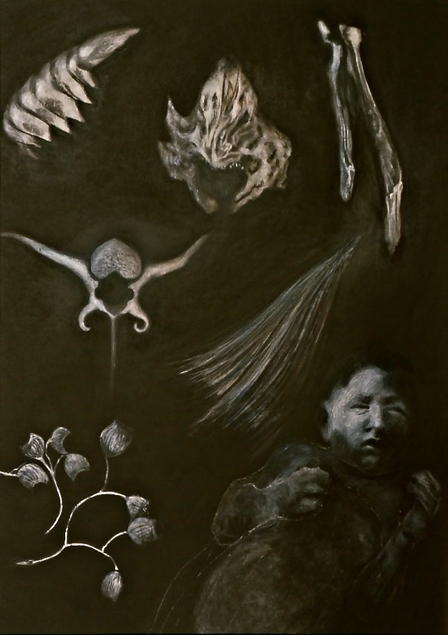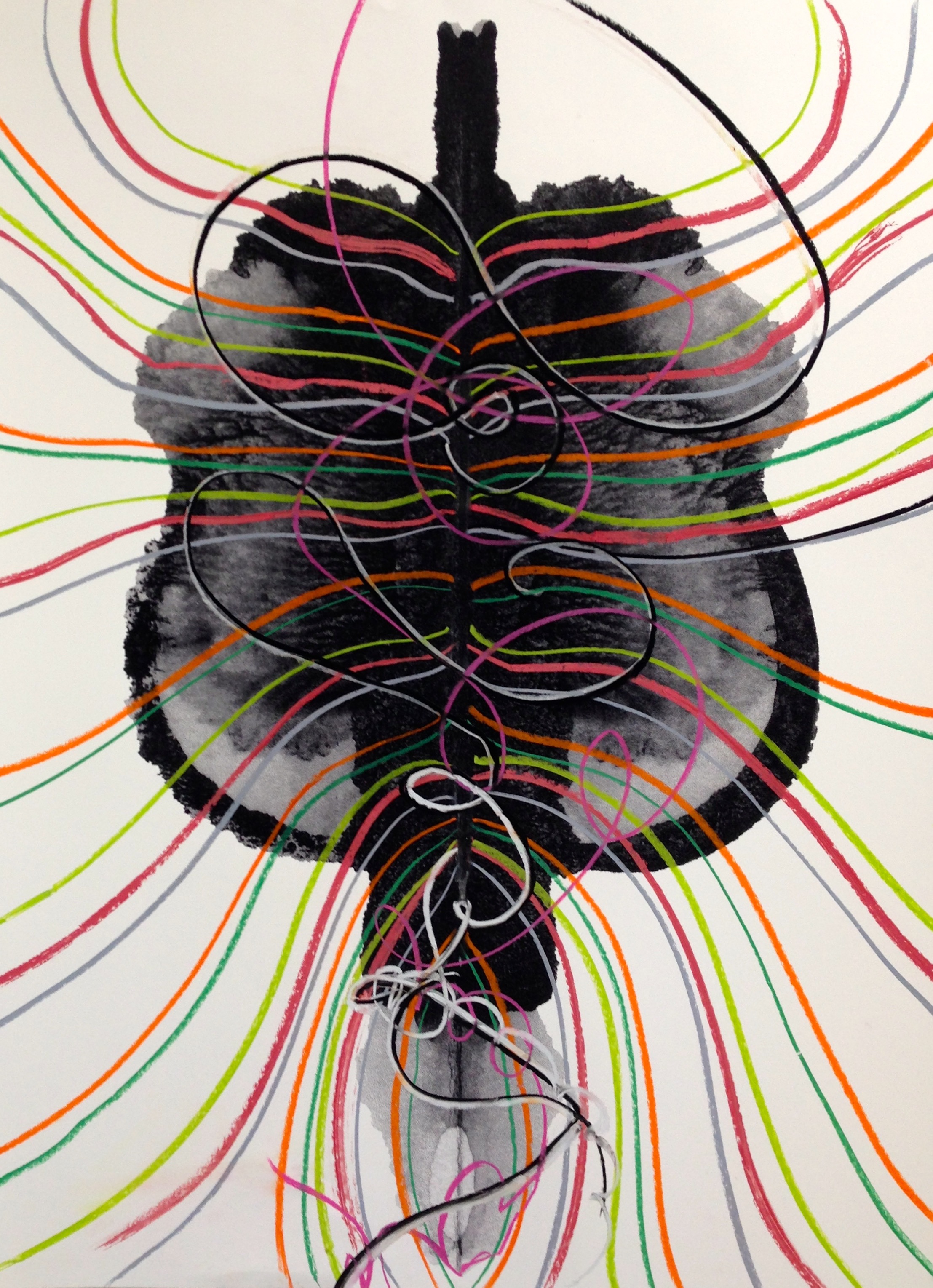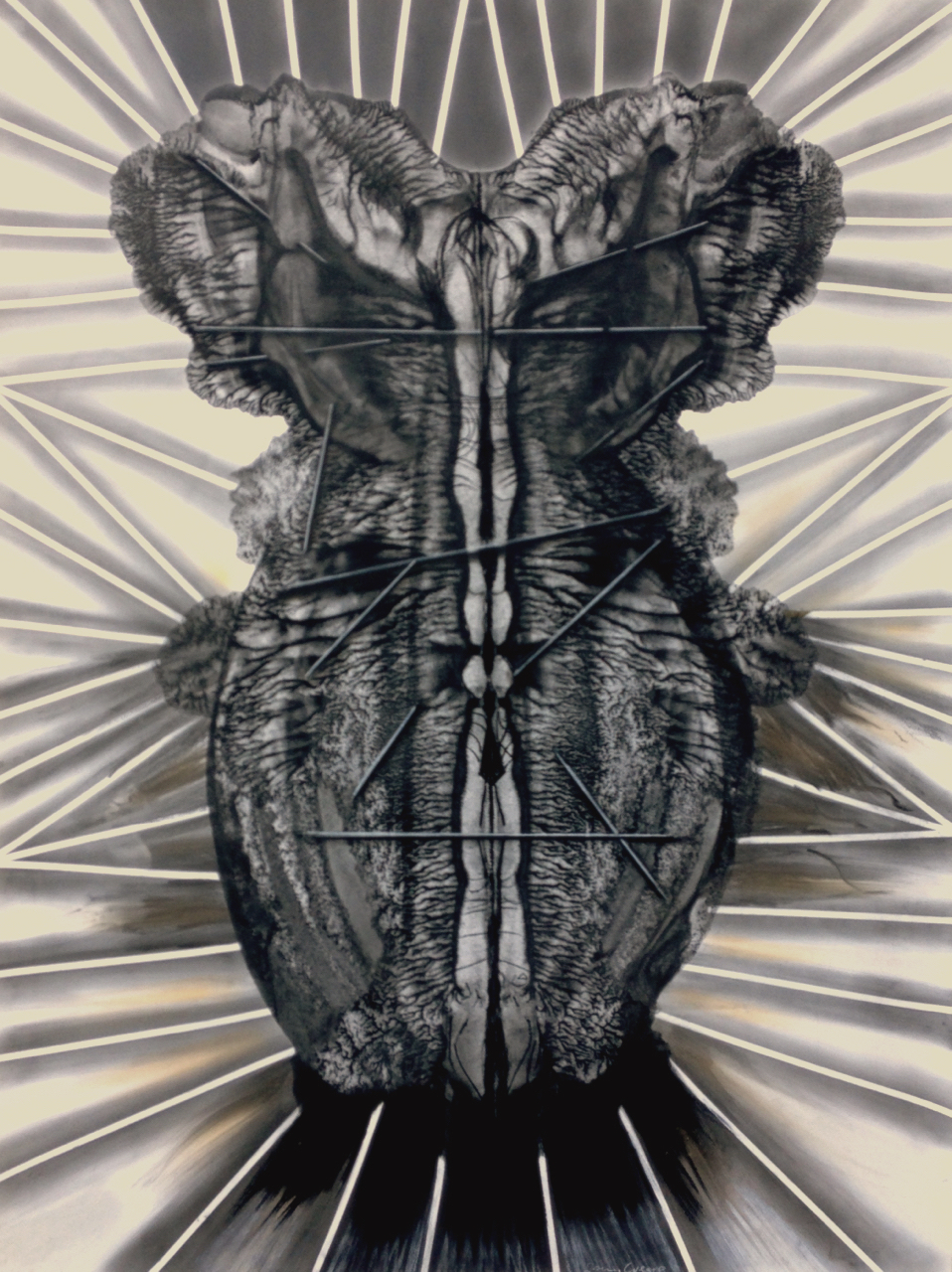 After many years of drawing and painting, making photographic series and then experimental interdisciplinary work, I began to draw again. During the mid-90's, after the deaths a few months apart of both my parents, I began a series of what I thought were exploratory interior drawings. Using a spontaneous process like automatic writing, I made gestures with charcoal and pastel, or brush and ink, accepting whatever appeared.