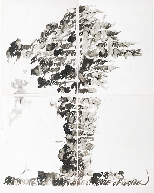 I PLANT THE WORD, 4 panels each 68×82 cm, total dimension 170×140 cm with frames, Ink, water on paper, 2018