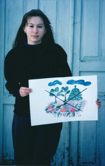 Viewing the surroundings of the school in 1996, which became our art intervention basement for one week, we saw the washed out earth and dismal atmosphere of a half filled classroom, with a teacher and his outdated teaching material. In the few days that we were there it was not easy to find artists from Belarus who had the courage to travel in the contaminated Zone. We did find Vladimir Gontscharuk, a very peaceful Russian soul, who was calmly packing his feelings about the situation into poetic paintings, and who was reflecting our actions with several very deep philosophical interpretations like: ‘If the ship of our civilization is the Titanic, then we leave the Noah´s Arc to our children.’
