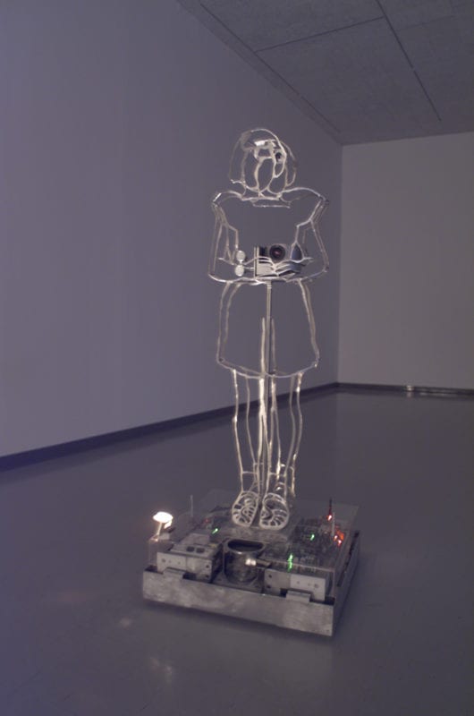 RS: When I made a robot that looked like a young girl, I was coming out of the phase where I was looking at video games which over the top sexualized woman. I purposefully made a surrogate of myself as a young girl, neutral and non-sexualized. After this piece I wanted to take a lot of the body out of the picture.