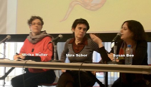 The artists in the second group Susan Bee, Mira Schor, and Ulrike Müller work with painting, drawing, writing and publishing in individual and collaborative projects and in Ulrike Müller’s case also with performance.