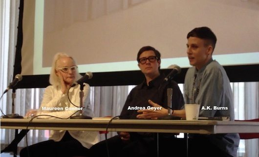 The first group included Andrea Geyer, Maureen Connor and A.K. Burns. Video and installation artist Andrea Geyer, uses both fiction and documentary strategies in her image and text-based works. Maureen Connor‘s installation, video and design practice encompasses human resources and social justice in the workplace. Connor is also a founding member of the collective ‘The Institute for Wishful Thinking.’