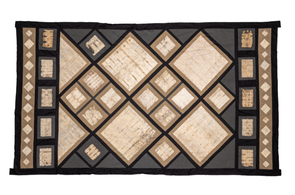 - Fig. 6a: Al Batinah Plains, quilt made of buried cotton cloth, commercial cotton fabric backing, 46″ x 49″, Oman and USA, 2024. Photo: David Mayes
