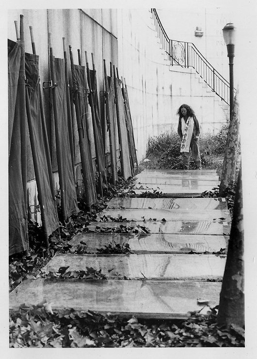 Then in 1982 she was inspired by a talk she heard by Australian antinuclear activist Dr. Helen Caldicott. Concerned about the omnipresent threat of ‘nuclear shadow,’ she rededicated her artwork ‘To Rescue the Earth.’ For the next ten-plus years she created and directed one long series of expansive, inclusive, literally moving (physically, emotionally, aesthetically) international ritual performances called THE EARTH AMBULANCE. Deceptively simple, her ‘Rescue the Earth’ projects are based on developing opportunities for the international cooperation critical to planetary survival.