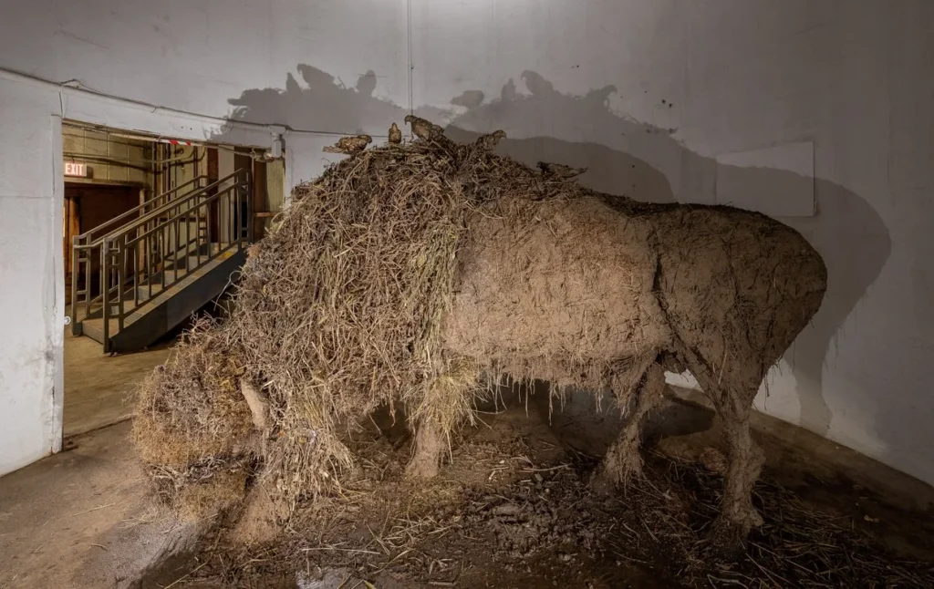 The final rotation took the bison to a vacant Forever 21 space. Overconsumption affecting wildlife predates the petroleum industry, rooted in fashion industry practices, as detailed in the Saturday Evening Post article Looks That Kill: The Fashion of Extinction, which chronicles early efforts to save birds from millinery industry threats.