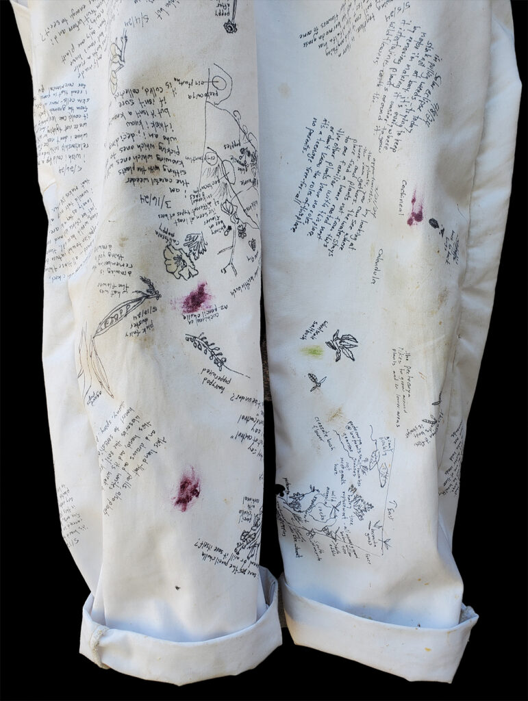 Yard Work is the evidence of my presence in the landscape and includes writing, drawing, sweat, soil, and other stains on the white coveralls I wore for each season.