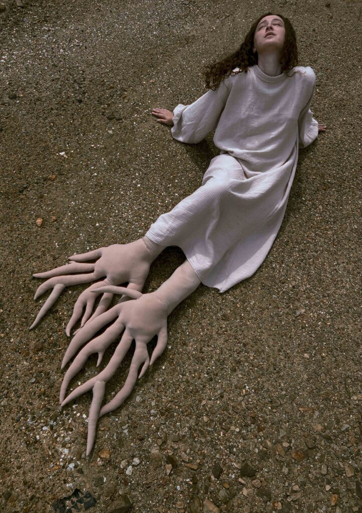 I often feel like my body doesn’t belong to me. He has his own life that he has to adapt to. The body has power over the mind, a body that has partially separated some forms from itself, while forcing me to carry them on myself. There is a theme of formlessness and metamorphosis. Sometimes I look in the mirror and don’t understand if this is my body at all, or if someone replaced it at night, and now I’m walking around with someone else’s. Through this possibly banal image of a “womb suit,” I wanted to convey the feeling when you yourself feel like one huge uterus, since you place great emphasis on the sensations inside it. Or people see you not as a person, but as a walking reproductive system. So, for example, now the state of my country is looking at me. It stretches its sticky hands into my personal space, shamelessly intrudes, and touches where I would not like. It reminds me of how man exploits nature.