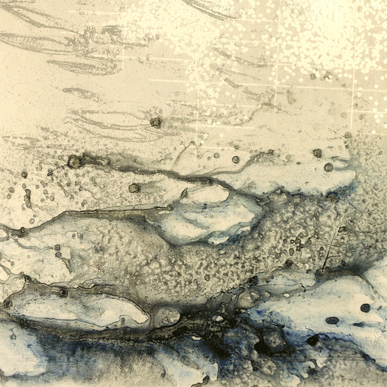 Reclamation #1 (abstraction of the steel head trout), Beth Fein, photo etching with kozo chine collé & blind emboss relief print, 28″ x 25″, 2018. by Mikala Sterling | Jan 19, 2026
