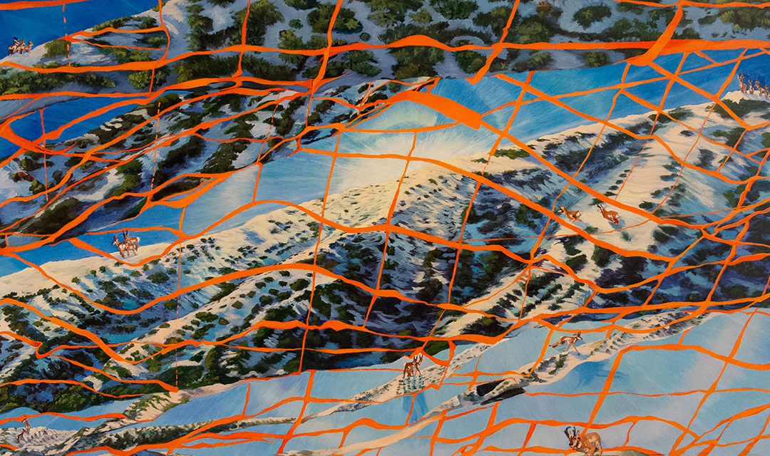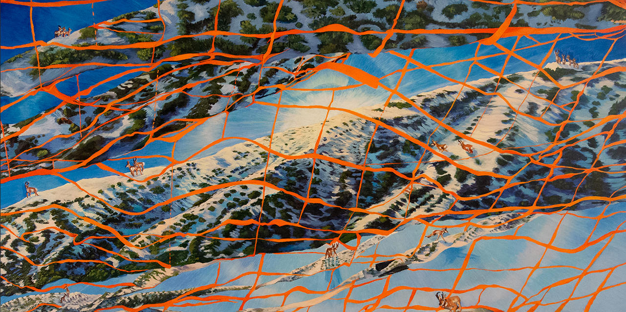 Entangled in the Web of the Floating World, Amy Feger, oil on panel, 24″ x 48″, 2025. by Mikala Sterling | Jan 19, 2026